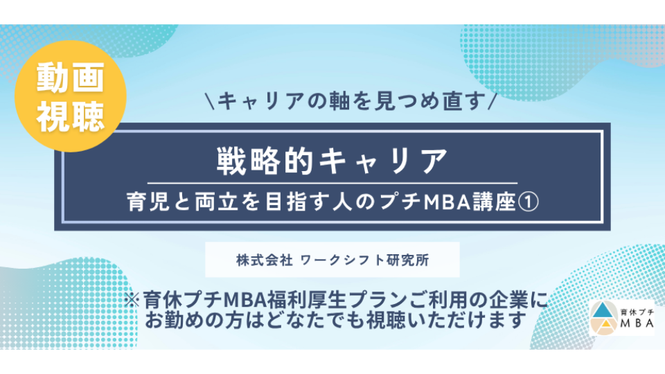 出産・育児と仕事の両立を考える上で欠かせない「キャリアの軸」を見つめ直す講座です。